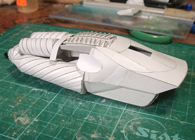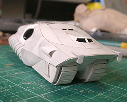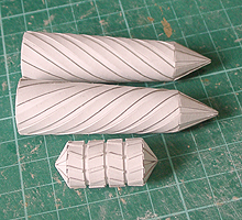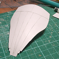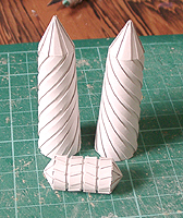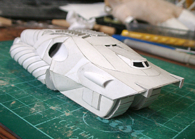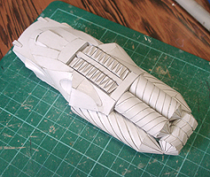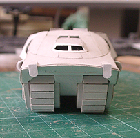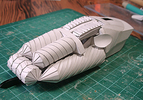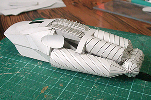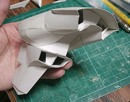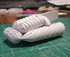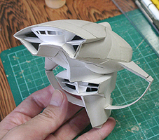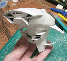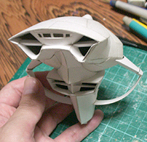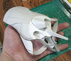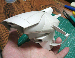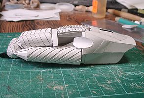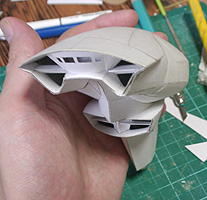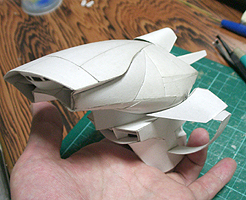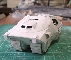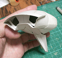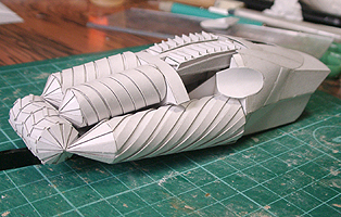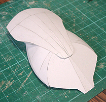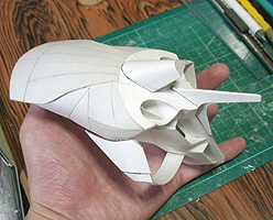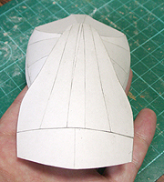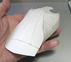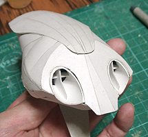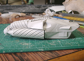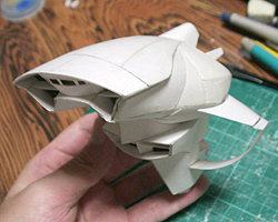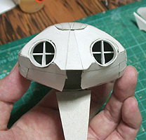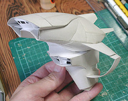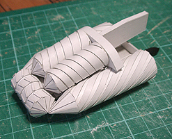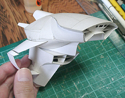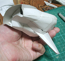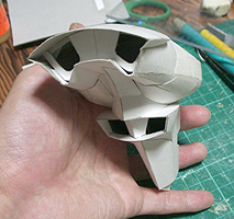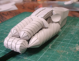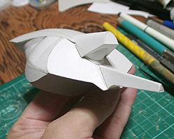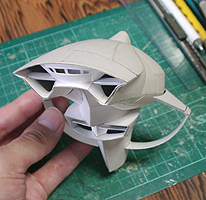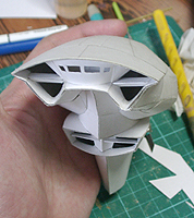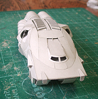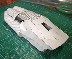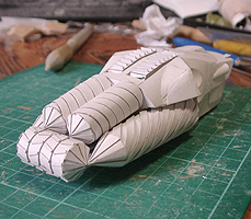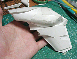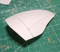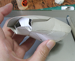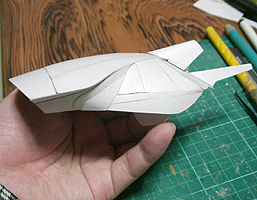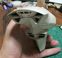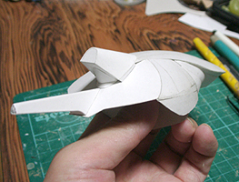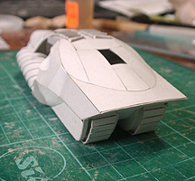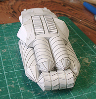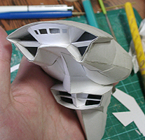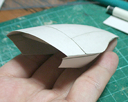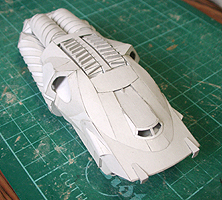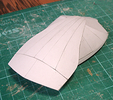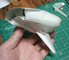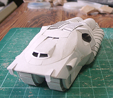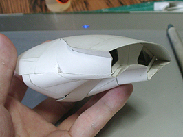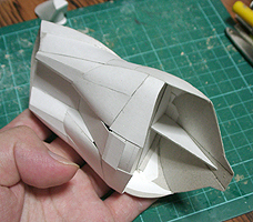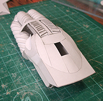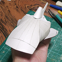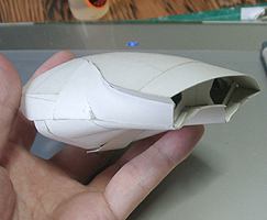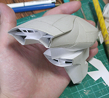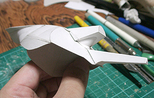 前方の2つの張り出しはライトです。紙で作るのはキツイので、パテ成型時の際に作ろうと思います。