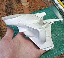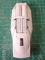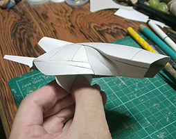 こちらは下部翼後ろですが、微妙に噴出口をいじってます。あと前面のパーツが着いたので、船体の流れがわかります。