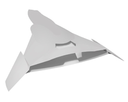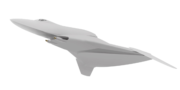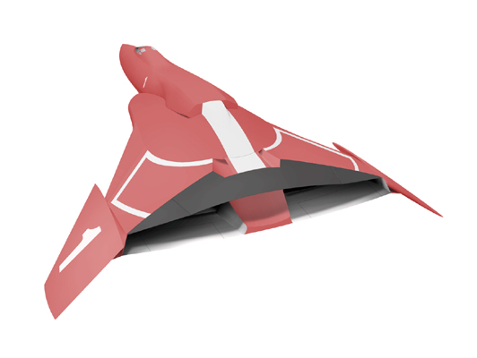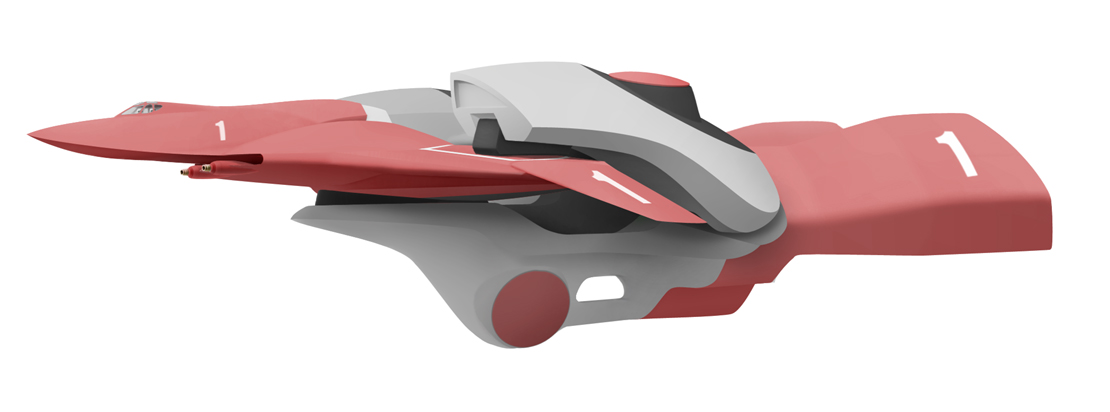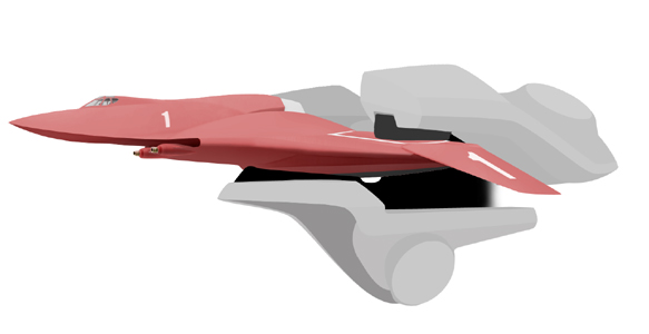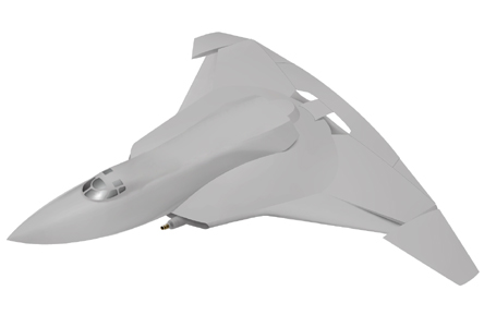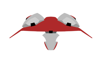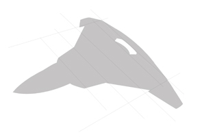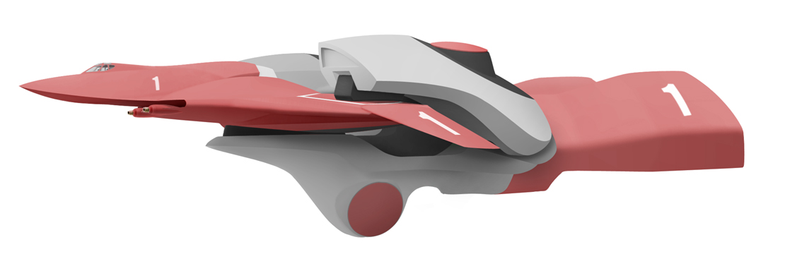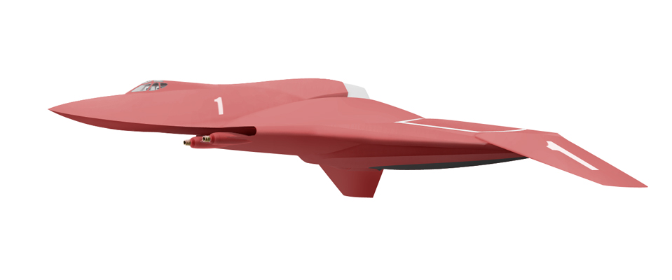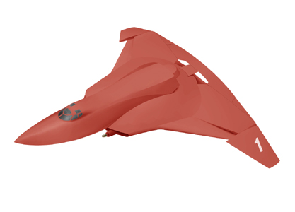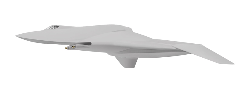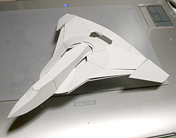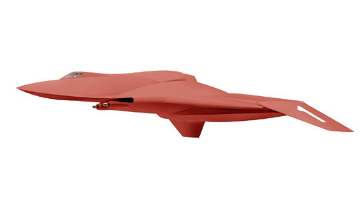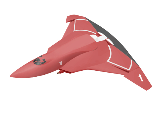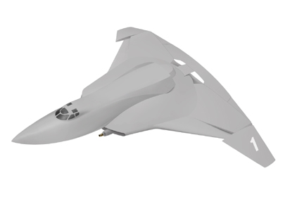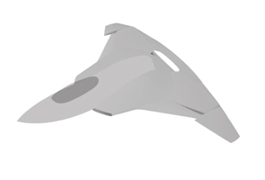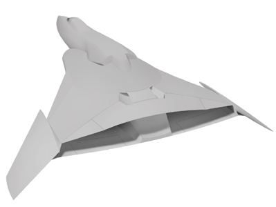 デザイン部分では、エアインティーク的なものは全て閉じるかもしれません。上から見たときの機体中央の穴は、曲面を作れなかったので開いているだけで、ディテールにはしません。後部の開いている穴全面が推進エンジンです。コクピットは4人座席があったりします。装備メカだからといっても小型の戦闘機ではありません。 |