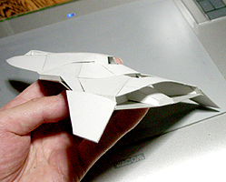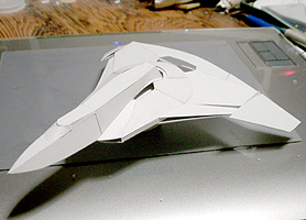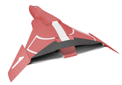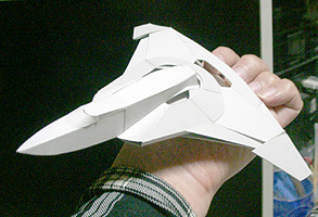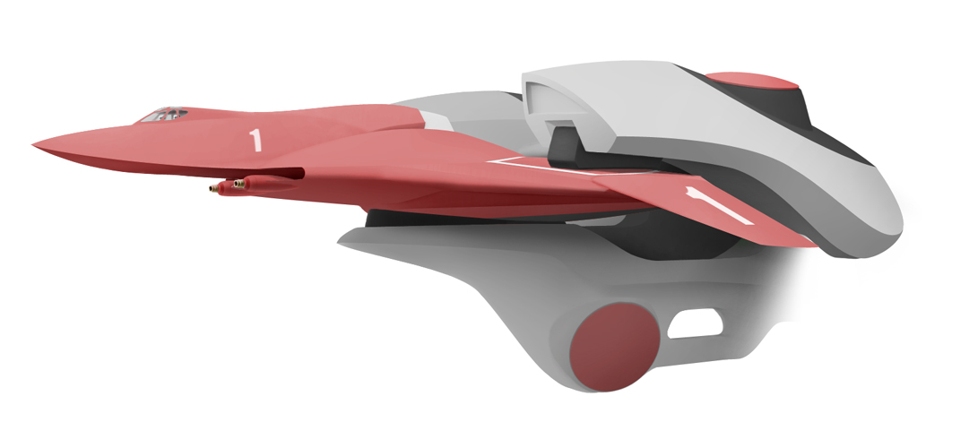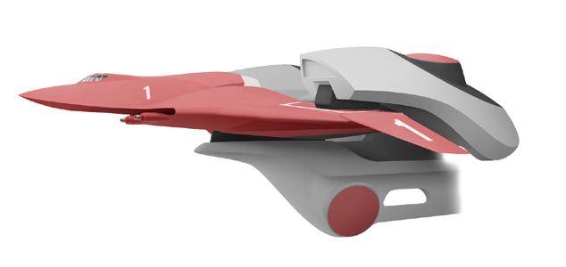 ファイターのデザインは、装備メカであり、単体で魅せきるものではないので、単純なシルエットにしましたが、頭の中に浮かんだ立体はとても面白く、立体が欲しくなりました。ぜひ再現したいと思って作ったのがこの形でした。