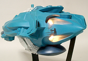 今見て思いつくのは、もっと四方八方にライトを付けて虹色の光を拡散させるようにしたほうが、派手な時空移動の演出ができる気がします。また、よりUFO的なイメージ、特殊な存在のマシーンという設定に近ずきます。たぶん映画(今では大作ゲームも)これをテストショットにして色々検討して、より完璧なものにしていくんでしょうね。 |