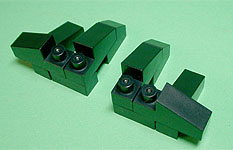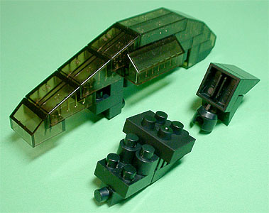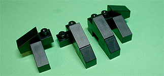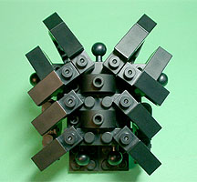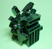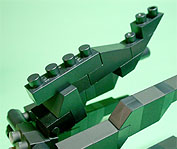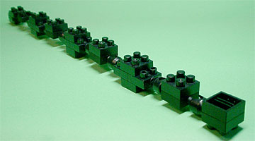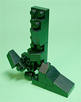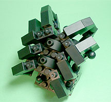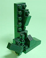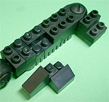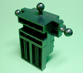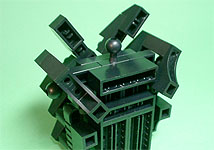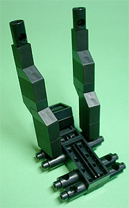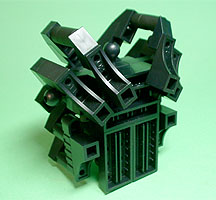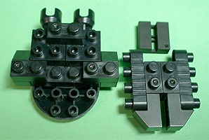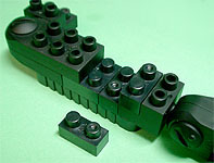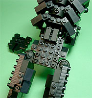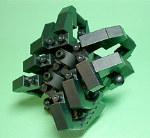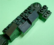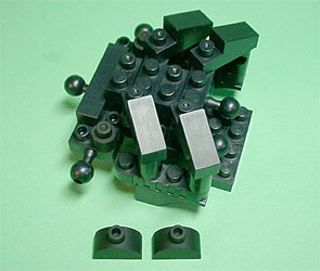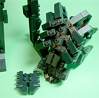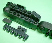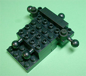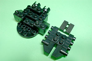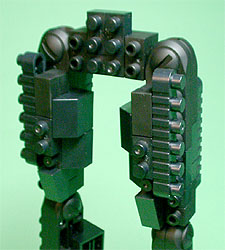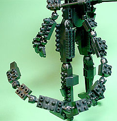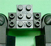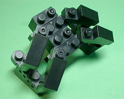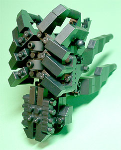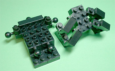 胴体、上半身の芯 になる部分です。 表と裏に挟まれて 見えなくなっている 部分は2×4ポチの ブロックが2枚並ん でいます。 今回のエイリアンは スタイルが細身なた め腕に大型関節は使用していません。 |