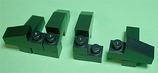 | 下アゴに目に見える部分のパーツを 取り付けます。 後は右の写真の様に3つのパーツを 繋げます。 |