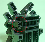 | 胸部に背部を取り付けた状態です。接続部が一見ゴチャっとしてますが、うまく窪みに入り込み パーツ同士が干渉することはありません。 |