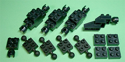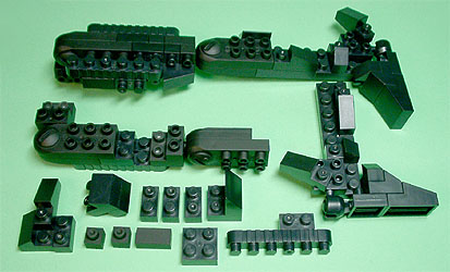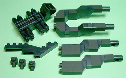 | 今まで組立てたパーツを全て並 べてみました。 なんかギーガーのイラストみたい。 |