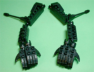| 今回のビックリアイディア、エイリアンの6本指です。(10本指になってま すが) 外側から見るとイメージはバッチリですが、内側は今ひとつにな ります。が、好き好んで内側を見せるポーズは取らせないでしょうから見 ないようにしましょう。 |
