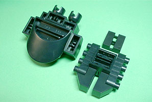 | この二つのパーツを接続します。 | 手前のパーツを胸部中央にはめ込みます。 |