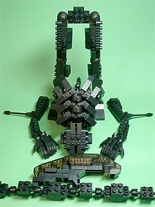 ここで、右上の完成したものに納得がいかなかったので目らしきものの下のパーツをキャタピラ状の