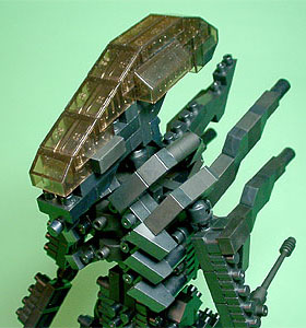 これで胸部は完成です。 今回のエイリアンでもっとも アイディアが入っているとこ ろです。 この後に背中に4本の煙突 と花びらのような物が付き ます。 |