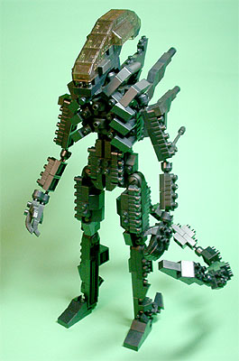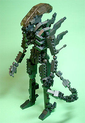 エイリアンの胴体部の完成です。 かなり、らしくなったと思いますがいかがでしょうか? 腹部はパーツの隙間分曲げることが出来ます。 背部の煙突は4本全てが胸の後に付いているのではなく(アニメ的発想ではそうなる)、一番下の煙突は腹の後に付いている。そこら辺もこだわって制作しました。 |
