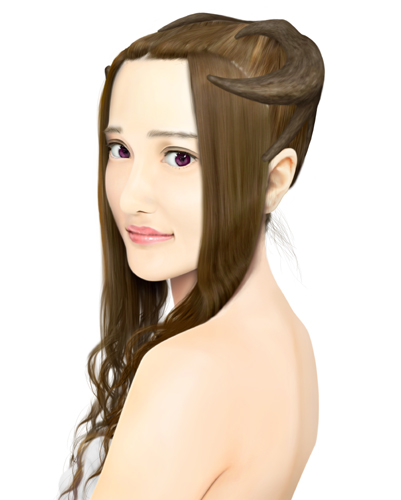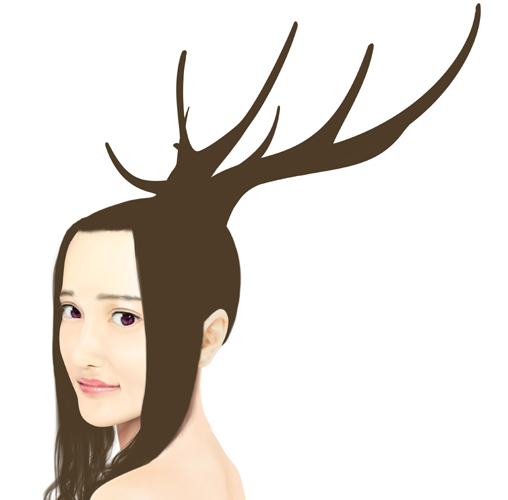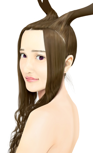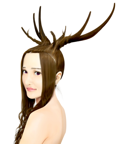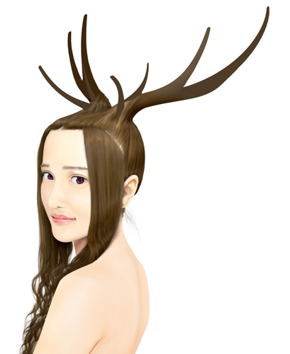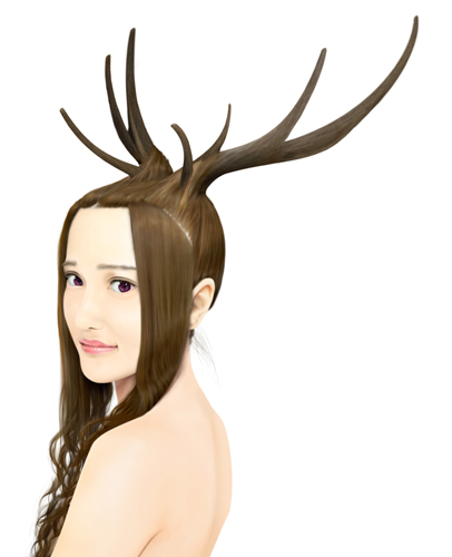 髪の毛のハネで枝分かれした角の幾つかを表現しても面白そうです。 |