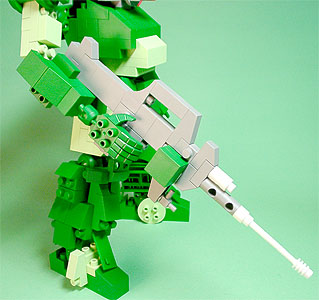 ヘビーマシンガンの前方フォアグリップ先端に付いているフィグ用のビームガンパーツを回転させ、