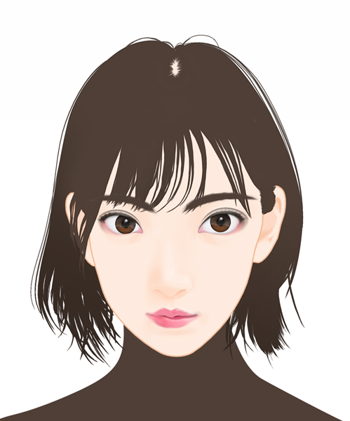 この画風は、描き込みや光と影による立体表現を可能な限り排除した上で、デザイン的にまとめる手法をとっています。