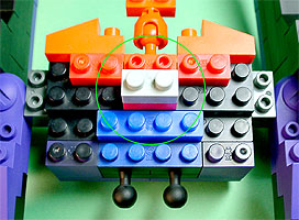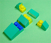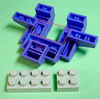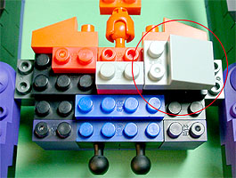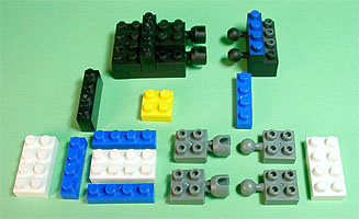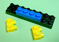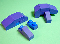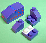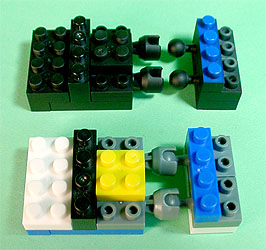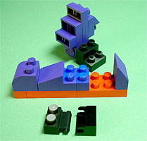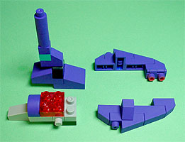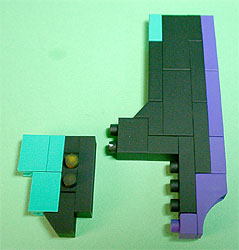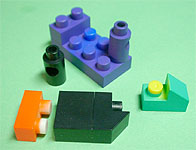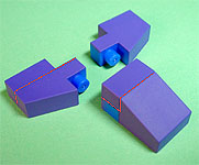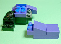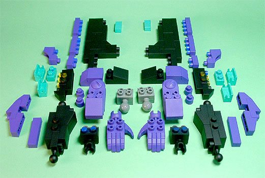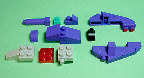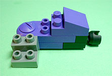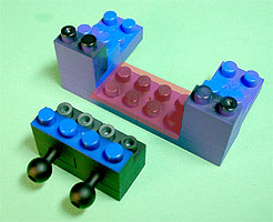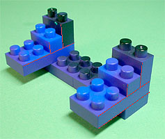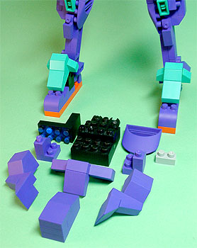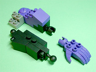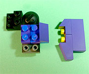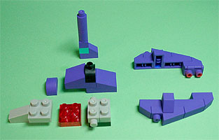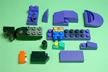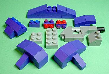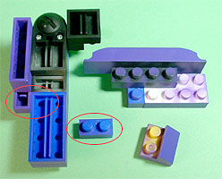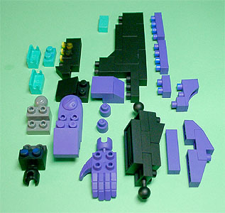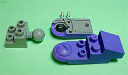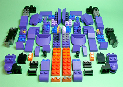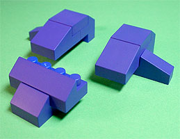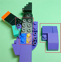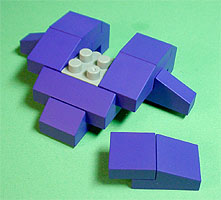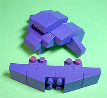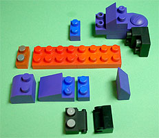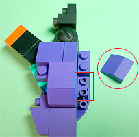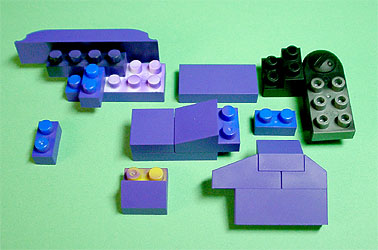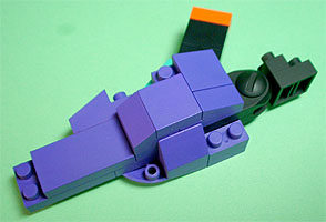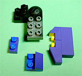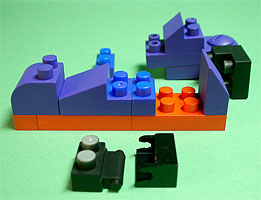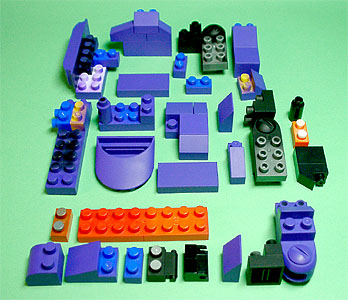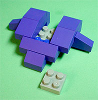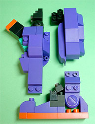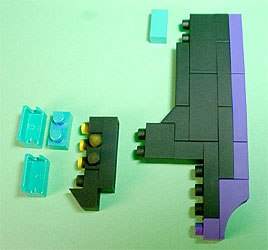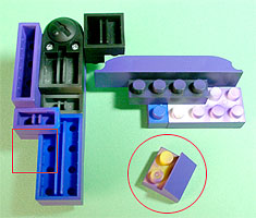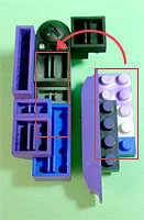 まず写真左のパーツを全てパープル色のブロックで組み立てます。