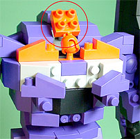 首筋のオレンジ部と接続パーツを左右に取り付け、中央にグレー色の2ポチパーツをはめ込みます。