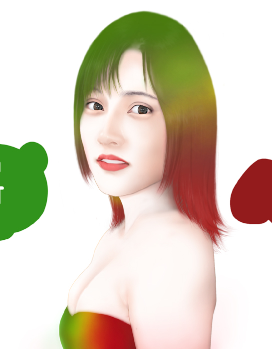 化粧けの無いナチュラルメイクにするつもりでしたが、赤がテーマに入っていたので、クチビルは最初のものより赤くしてます。