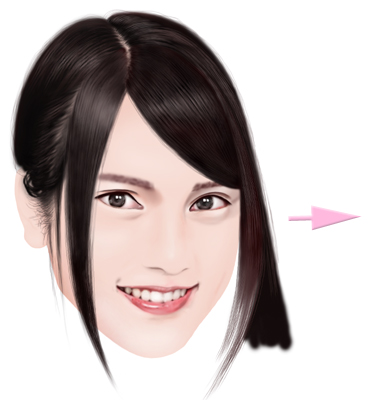右前髪は後で目を大きくする事を考慮して少し右側によせています。