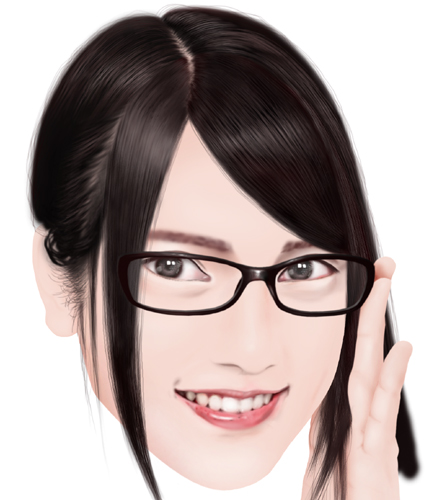 一応バーションとして、メガネのあるなしバージョンと、右側の髪を下ろしているものとアップにしているバージョンです。指し棒は髪の毛がある場合は外します。