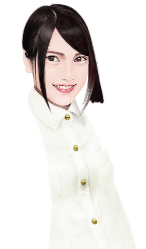 もともと白衣の下にはAKBの衣装を着せる予定でした。(スタジオの収録を想定)その時にジャケットは脱いで白衣を着るであろうと考えていた。なんかそれを漠然と考えていて、手首にそでを描かなかった。ジャケットを脱いでもシャツのそではあるはずなのに。ミスりました。そうなると必然的にそでのない衣装ということになる。