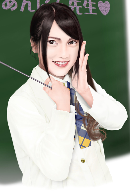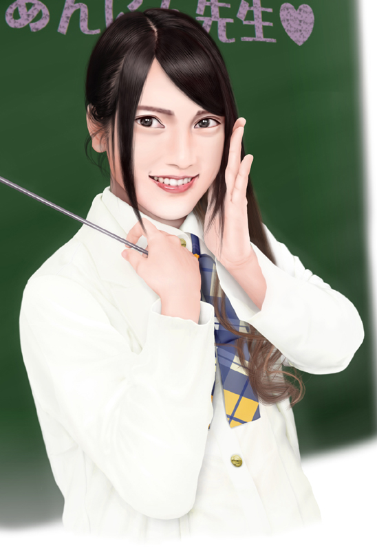 AKBの衣装は、これたぶん現在解体されてるチーム4時の衣装なのかな? 選択ミスと思われるが気にしない。気にしたところで今更描き直せないし、現在テレビで着てる物はちょっと複雑で画像資料がないとなかなか描けない。うちのパソコンはモニターが古いままなので、デジタル放送の保護機能に対応していない。だからせっかく録画してもキャプチャー画像が取れない。これができれば作品作りのフットワークがかなり軽くなるのだが。モニターを買い換えることもできなくないが、この不便さが自らの力になると今は考えてやっています。