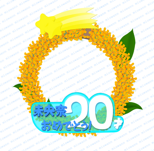 未央奈20才おめでとう!はフォントではなく手描きです。一文字一文字形を作り塗りつぶしました。