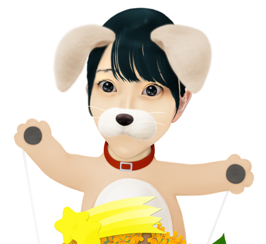 犬耳と犬鼻はSNOWをベースに作り直しました。今の段階だと、やっつけ仕事状態です。最終的には毛をちゃんと場所ごとに植毛していきます。 |