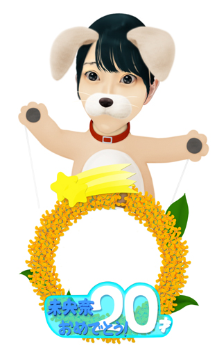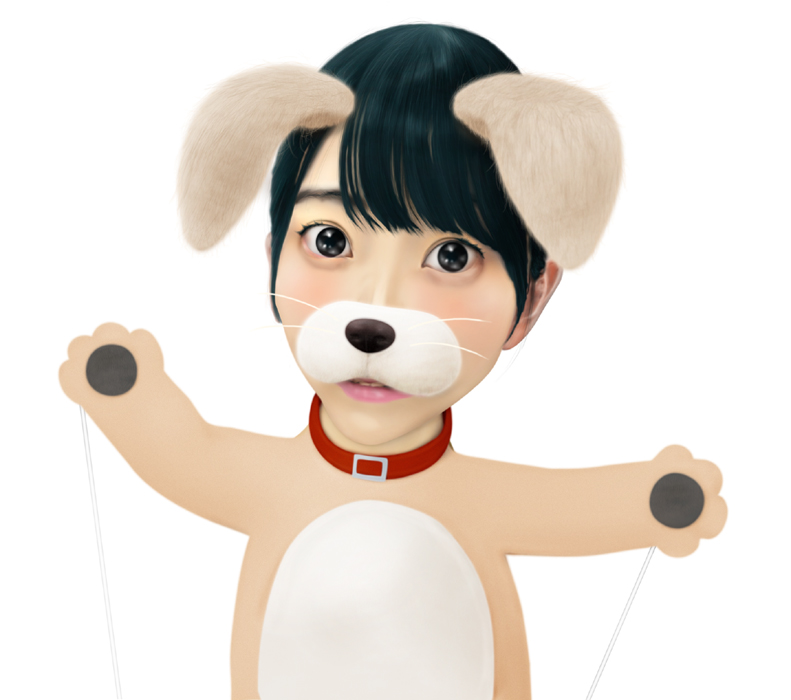 笑った表情にもしようと思いましたが、犬の口のせいで難しいです。目を笑った感じにすればいいが、未央奈のこの目はチャームポイントなので、ビックリ目は譲れなかった。