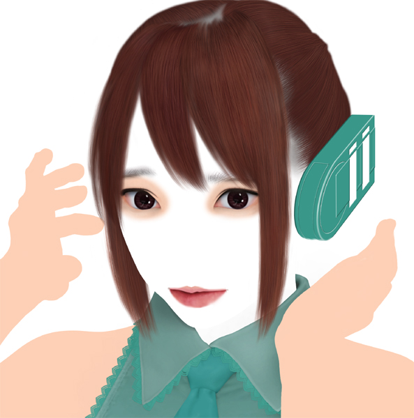 後ろ髪とヘッドセットを描きました。