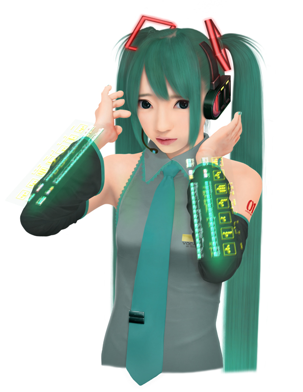 バーチャルアイドルという設定を活かしたいと思います。イメージとしては、Perfumeのコンサート、MVのCG合成、ヤンジャンあたりのコスプレグラビア企画なんかを想像してもらうと、ああ、その手のやつね。と理解してもらえるのではないかと思う。 |