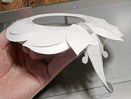 模型を作りましたが、ちょっとダメでしたね。リングの大きさや後ろから垂れているパーツやらが、頭の上に乗せるとバランスが悪く、実際の映像を想像するとこれは違うなとなりました。