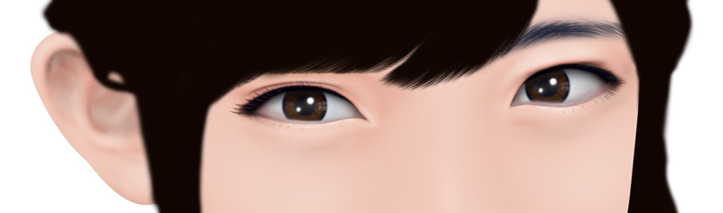 黒髪は細かいディテールがほとんど黒くつぶれていて、明るいところにだけ髪の毛のスジが見える感じになっています。