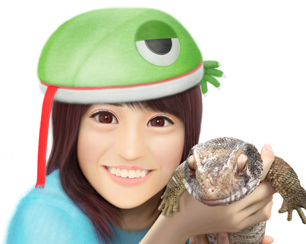 右の画像と、帽子とトカゲを外し