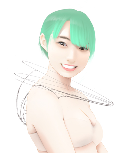 今回モデルにしている太田夢莉さんの髪型を改めて考えたいので、ほとんどの部分が描き直しになると思います。