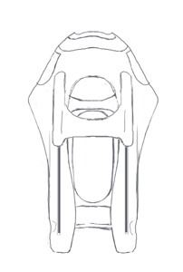 背中に当たる部分がコマのように山型になっています。この角度から一部しかのぞかないので立体が把握しずらいです。