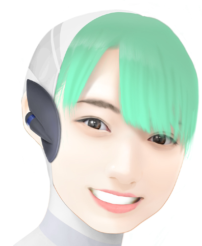 髪の毛は、ミント色にした毛をベースに再利用します。