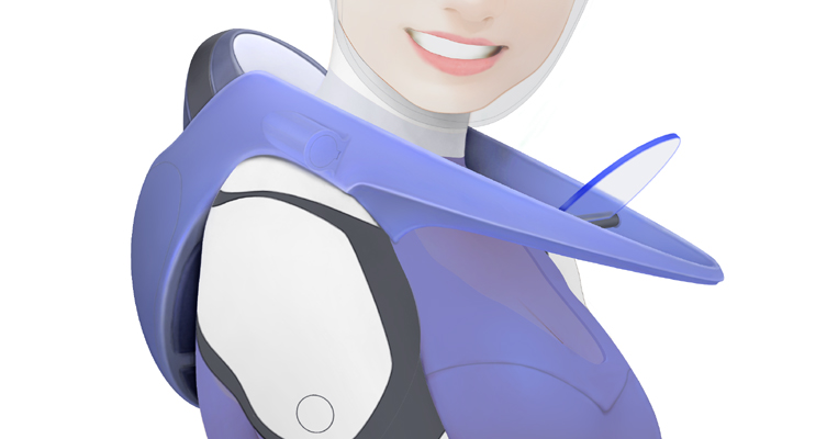 肩の上に付いているのが装置とのコードを差し込むコネクターです。