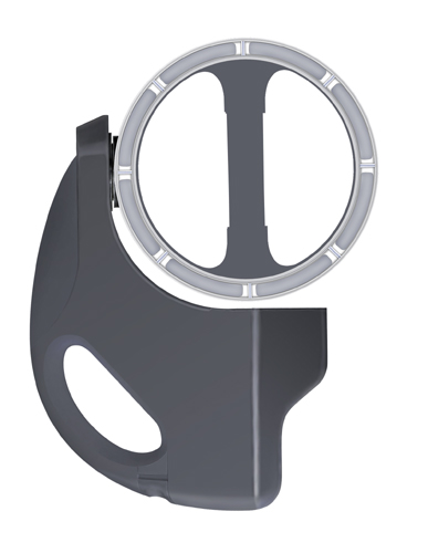アクションとしては、上からグリップを握り、本体をグルッと回わして、腕の上に乗せます。