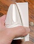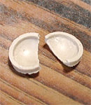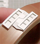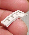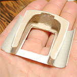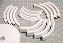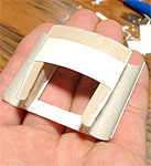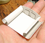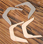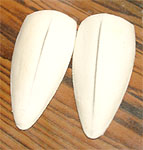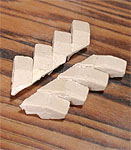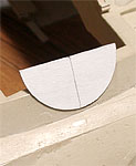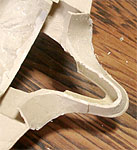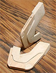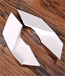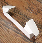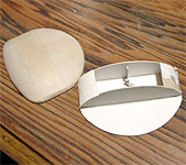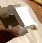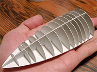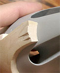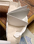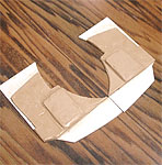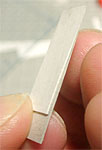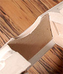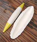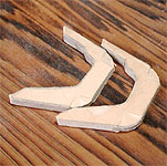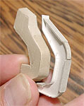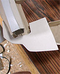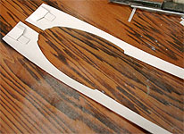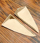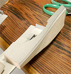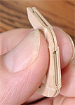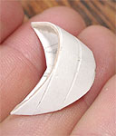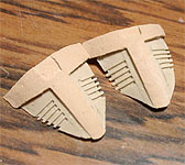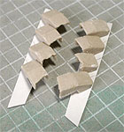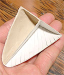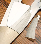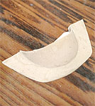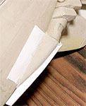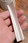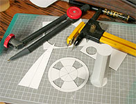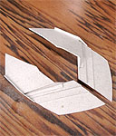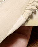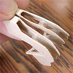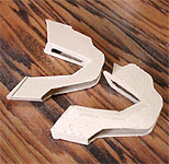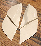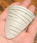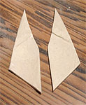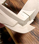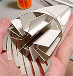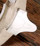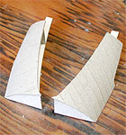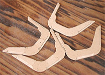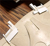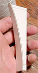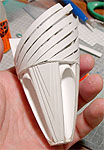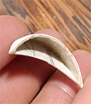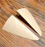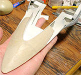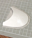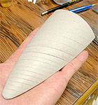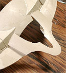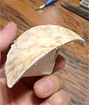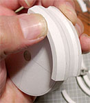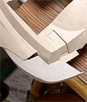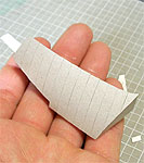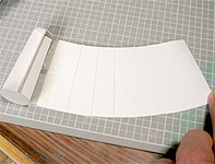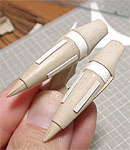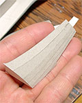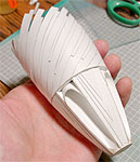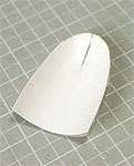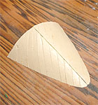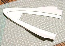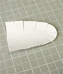 型紙から切り出し曲がり癖を付けます。丸い棒状の物でしごきながら癖を付けます。 |