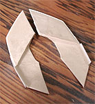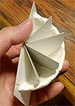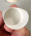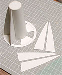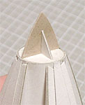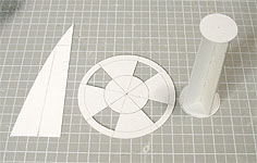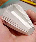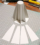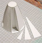 中央の円形に左の型紙をグルっと巻いた釣鐘型を作ります。 |