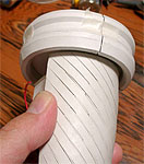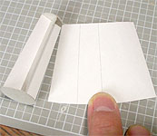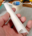 コピー用紙を大体の大きさに切り、一旦丸めてクセをつけます。その後本体に巻きつけます。 |