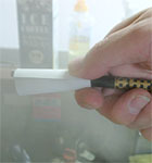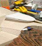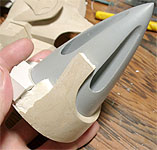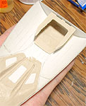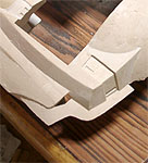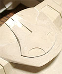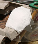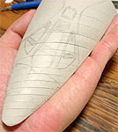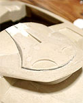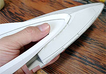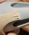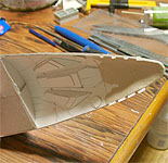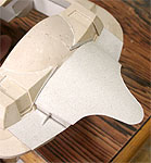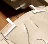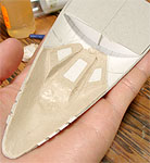 型紙にパテを盛るラインを描き、パテを盛った直後に作業に入ります。 |