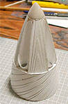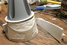 ガイドになる型紙を貼り付けエポパテを盛っていきます。 |