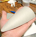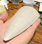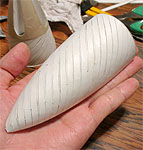 先端に固定して、皮一枚分残してか〜るいかみねんどを盛ります。