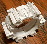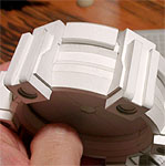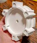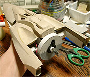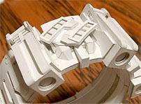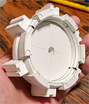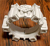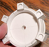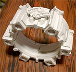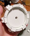 フライホイールの周りに配置します。このディテールは設定上はライトになっています。光るギミックは仕込めないのでアルミテープを貼りこもうかと思っています。更にその上にプラレンズを付けることが出来ればベストです。 |