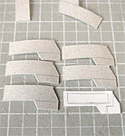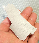 ガイドになる仕切り板を並べたら、細長く切ったボール紙を斜めに貼り付けていきます。