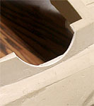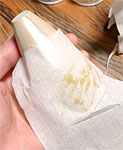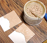 中央を堺に両面にパテを盛ります。今回はムクなのでペースト状のものを使いました。 |