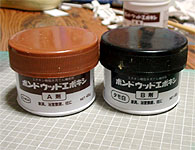 細かいところをエポパテで、大面積をペースト状のもので覆っていきます。 |