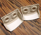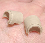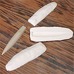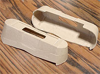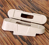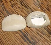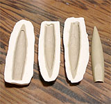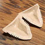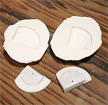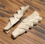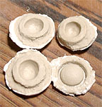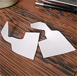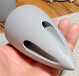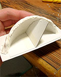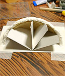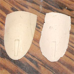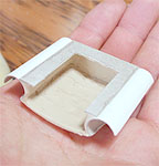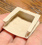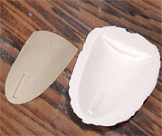 紙で原型を作り、表面にメンタムを塗り、かーるいかみねんどで型を取ります。今回はペースト状のエポパテで複製しました。 |