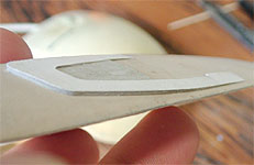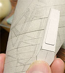 型紙を貼り付け、これをガイドに切り込みを入れます。