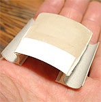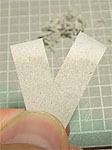 切ったあとに型紙を貼り、裏からペースト状のエポパテで覆います。